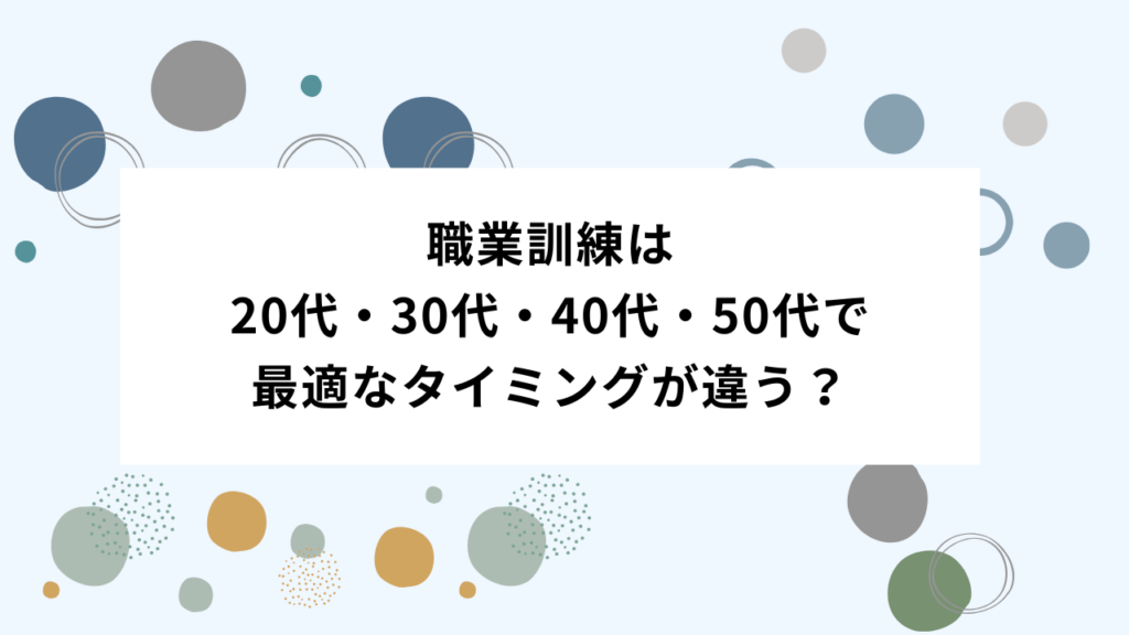 1 職業訓練は「年齢別」で最適なタイミングが違う?