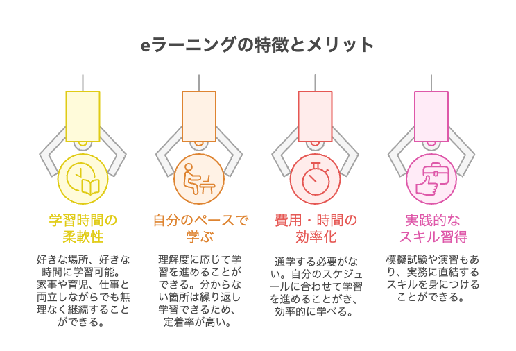 • 柔軟な学習:eラーニングを活用 → 自宅で無理なくスキルアップ