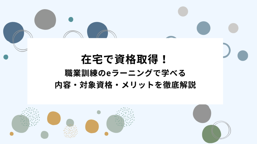 職業訓練の中でも、近年利用者が増えているのが「eラーニング型の訓練」です。自宅で学習できるため、子育てや仕事との両立がしやすく、さらに資格取得を目指せる講座も多くあります。しかし「どんな資格が取れるの?」「通所は必要?」など不安を持つ人も少なくありません。この記事では、eラーニング職業訓練で目指せる資格、学べる内容、メリット・注意点をまとめ、受講前に知っておきたい情報をわかりやすく紹介します。